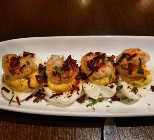 Back at Boca in Saratoga Springs. This time, shrimp, instead of fried oyster, on the deviled eggs. (at Boca Bistro)